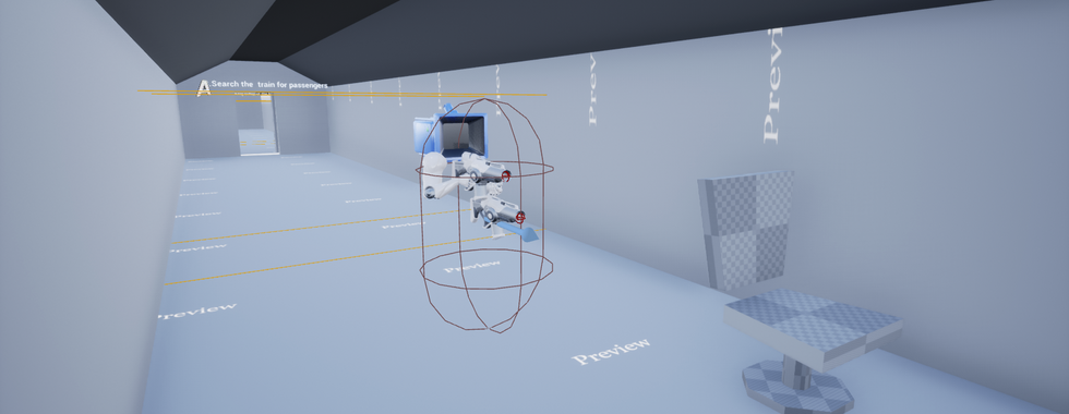 Finally, I had to create an animated in-game event for when the monster is climbing on top of the train while the player is inside it. It was the last task I had time for, but it added suspense to the experience and helped to set the tone for the rest of the level.