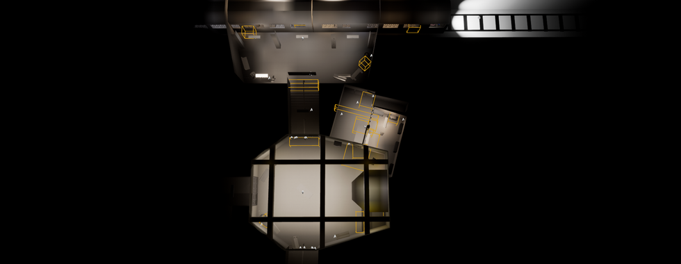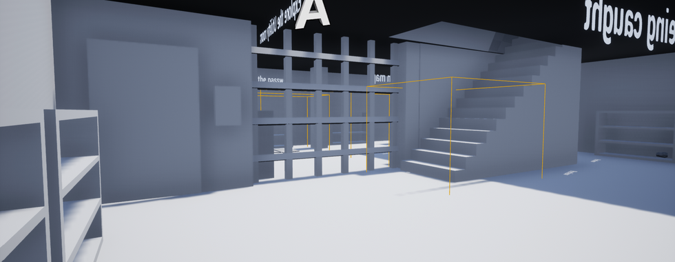 Now that the level had more details and space was coming together. I started working on the lighting and beginning to insert animations. At this point, I started having fun with designing the level. I have a strong background in film and animation that gave me a lot of creative insight into how best to light the scene to match the mood. I also had a good idea of what I wanted my animations to look like ahead of time, and it was a lot of fun to put them together. I found that when I started looking at the scene from the perspective of an animator. I got a better understanding of the level design concepts I had been learning. It allowed me to view the level From a more creative and objective perspective. From this point forward, I began to make small changes to benefit the presentation of the level layout for clarity and user guidance in ways I hadn't considered before.
